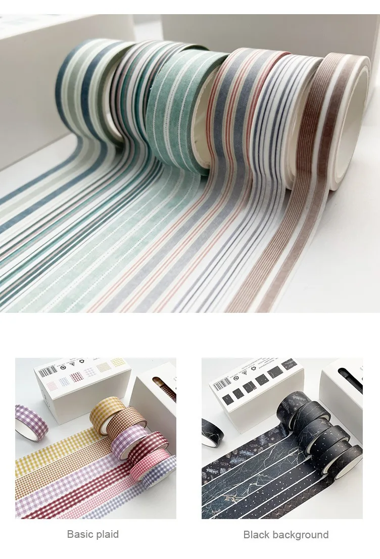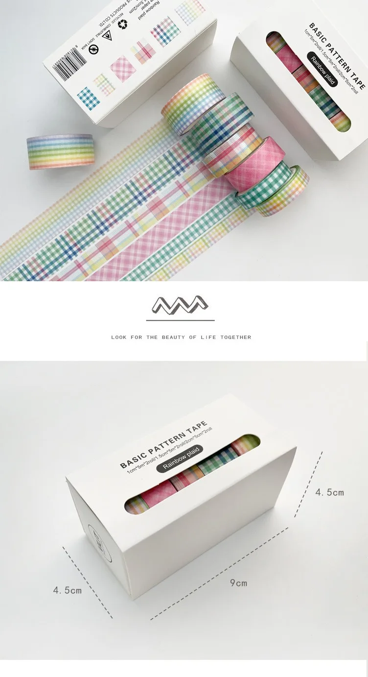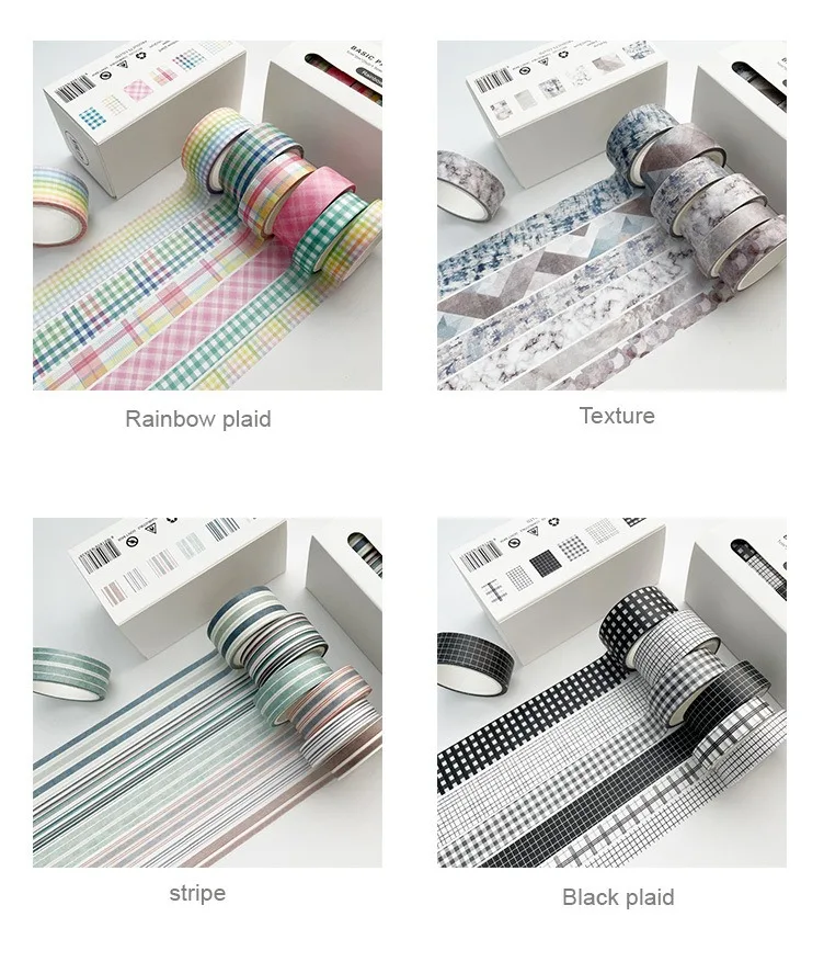 Elevate your creativity with our Kawaii DIY Washi Tape Set, featuring 6 vibrant plaid designs perfect for all your crafting needs! Why you'll love it: - Includes 6 beautiful and unique plaid patterns. - Generous length of 5 meters per roll for long-lasting use. - Ideal for scrapbooking, gift wrapping, and decorating. - Great for journaling and adding a personal touch to your projects. - Perfect gift for crafters and DIY enthusiasts. Each roll of washi tape is designed for versatility, making it the ultimate decoration material for your DIY projects. With the perfect balance of aesthetics and functionality, these tapes will bring joy and creativity to every project. Using them is a breeze: simply tear off the desired length and stick to any clean surface. They are removable and repositionable, making them damage-free and perfect for temporary designs. Unleash your inner artist with this exclusive washi tape set and start crafting today!