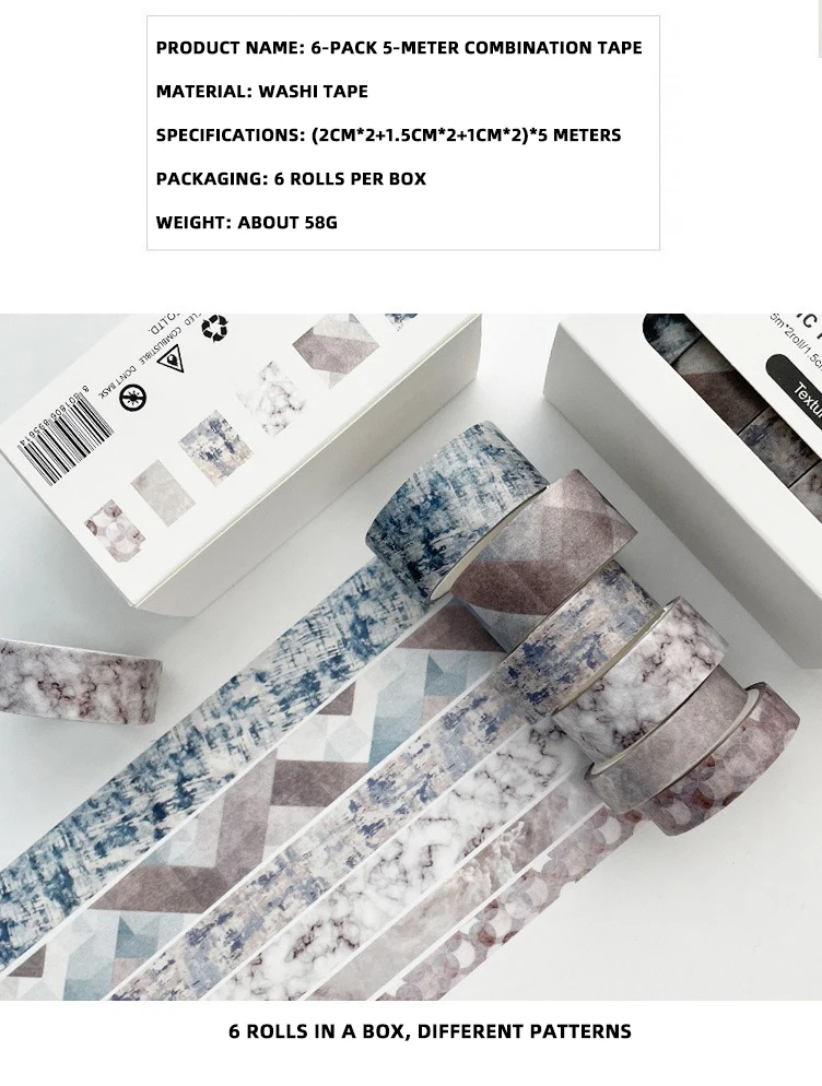 Kawaii DIY Washi Tape Set - 6 Rolls, 5m Each