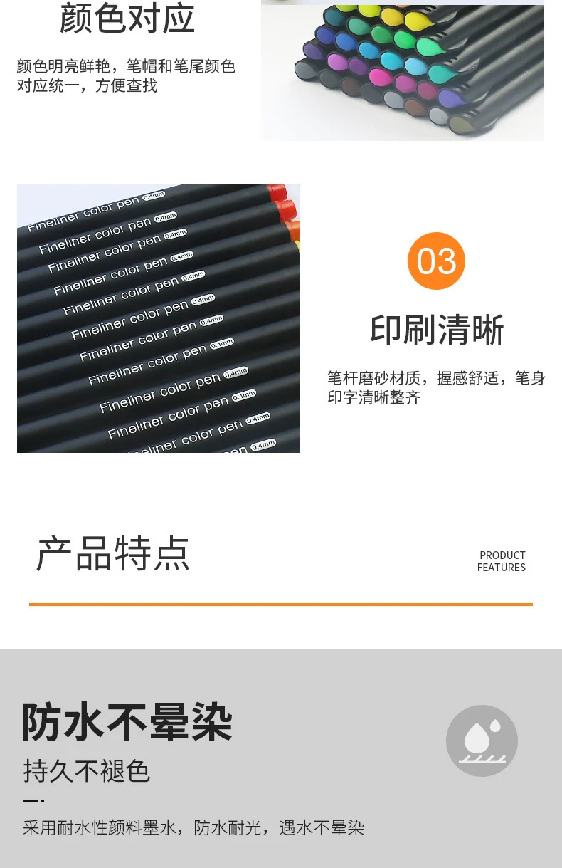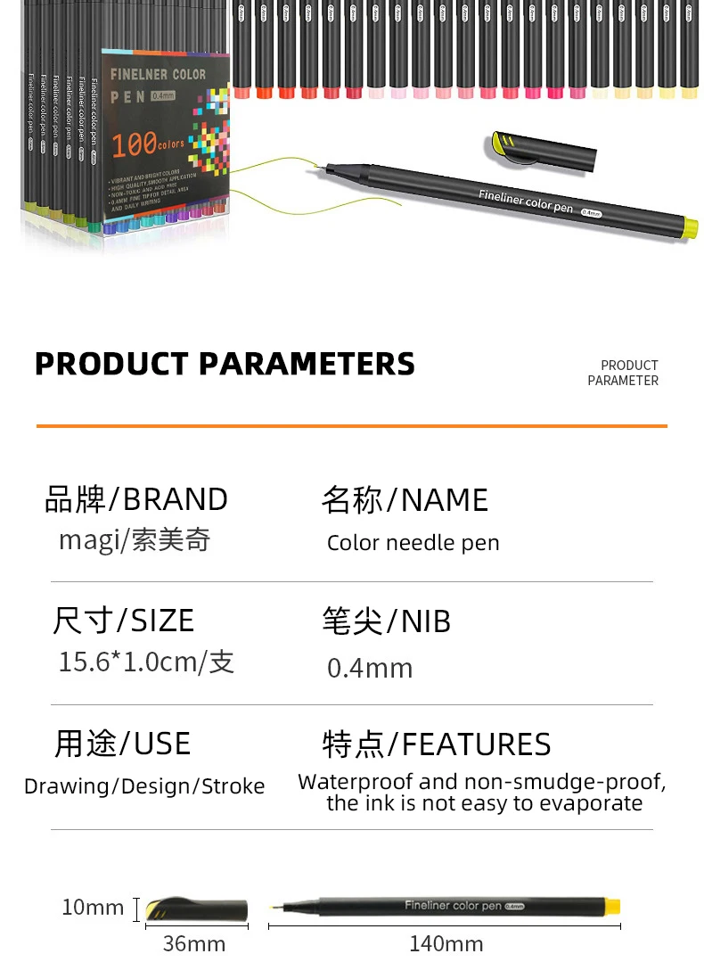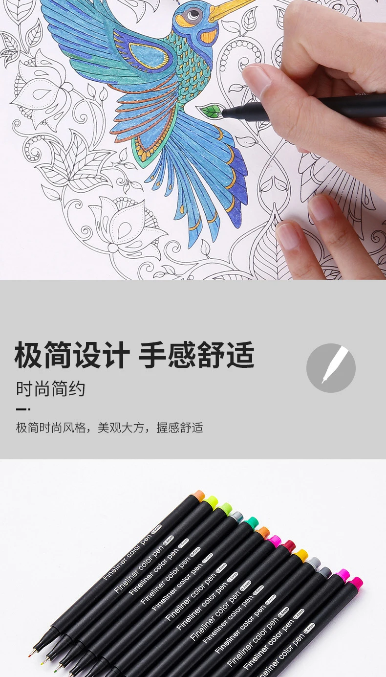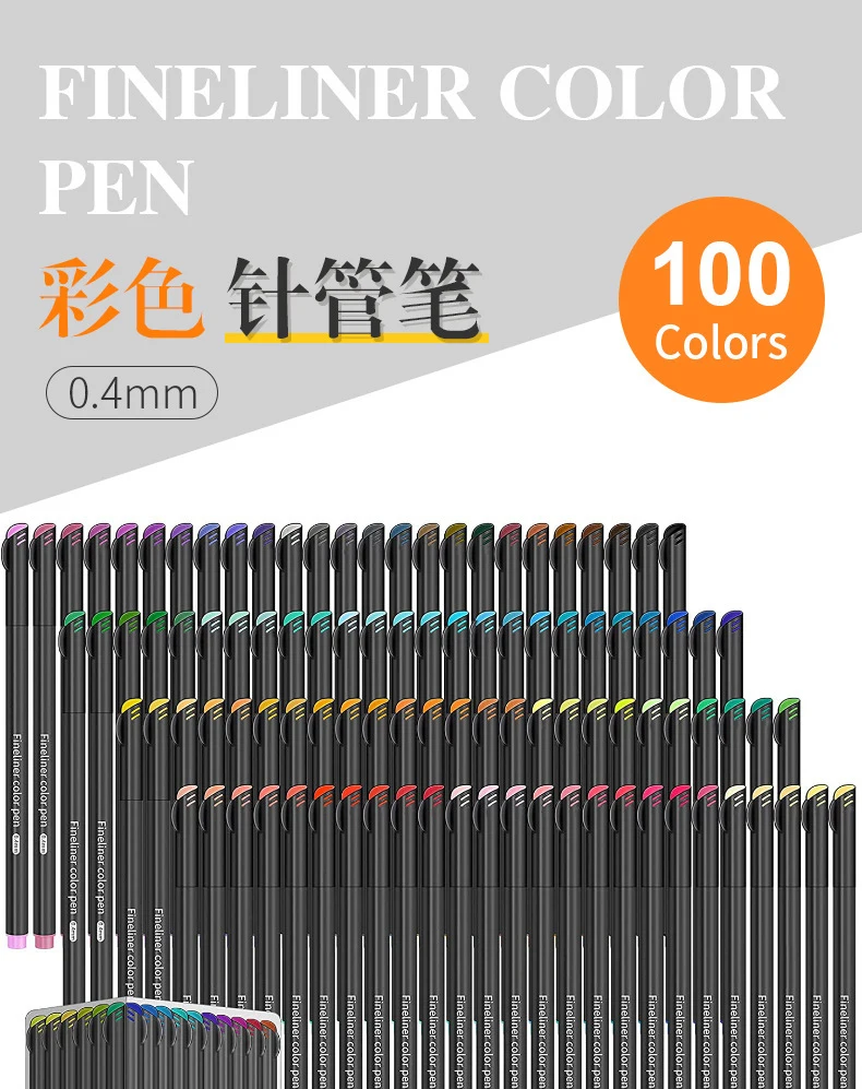 Unleash your creativity with our premium 03mm Colored Needle Pens, perfect for detailed artwork and vibrant coloring designs!Why you'll love it: - Available in 12 to 100 vibrant colors for limitless creativity. - Waterproof, non-smudging, and long-lasting for enduring artwork. - Comfortable frosted grip ensures a perfect fit for long art sessions. - Color-coded caps make it super easy to find your favorite shades. - Versatile use for watercolor painting, drawing, and coloring.Crafted with high-quality water-resistant pigment ink, these colored needle pens are designed for both precision and fun, making them an essential tool for artists and hobbyists alike. The clear printing on the pen body ensures visibility, and the convenient washable feature allows for easy cleanup.Simply select your desired color, and let your imagination flow as you create stunning artwork. Perfect for on-the-go creativity, whether you're at home or in a classroom. Don’t miss out on this exclusive offer—grab your set and start creating today!